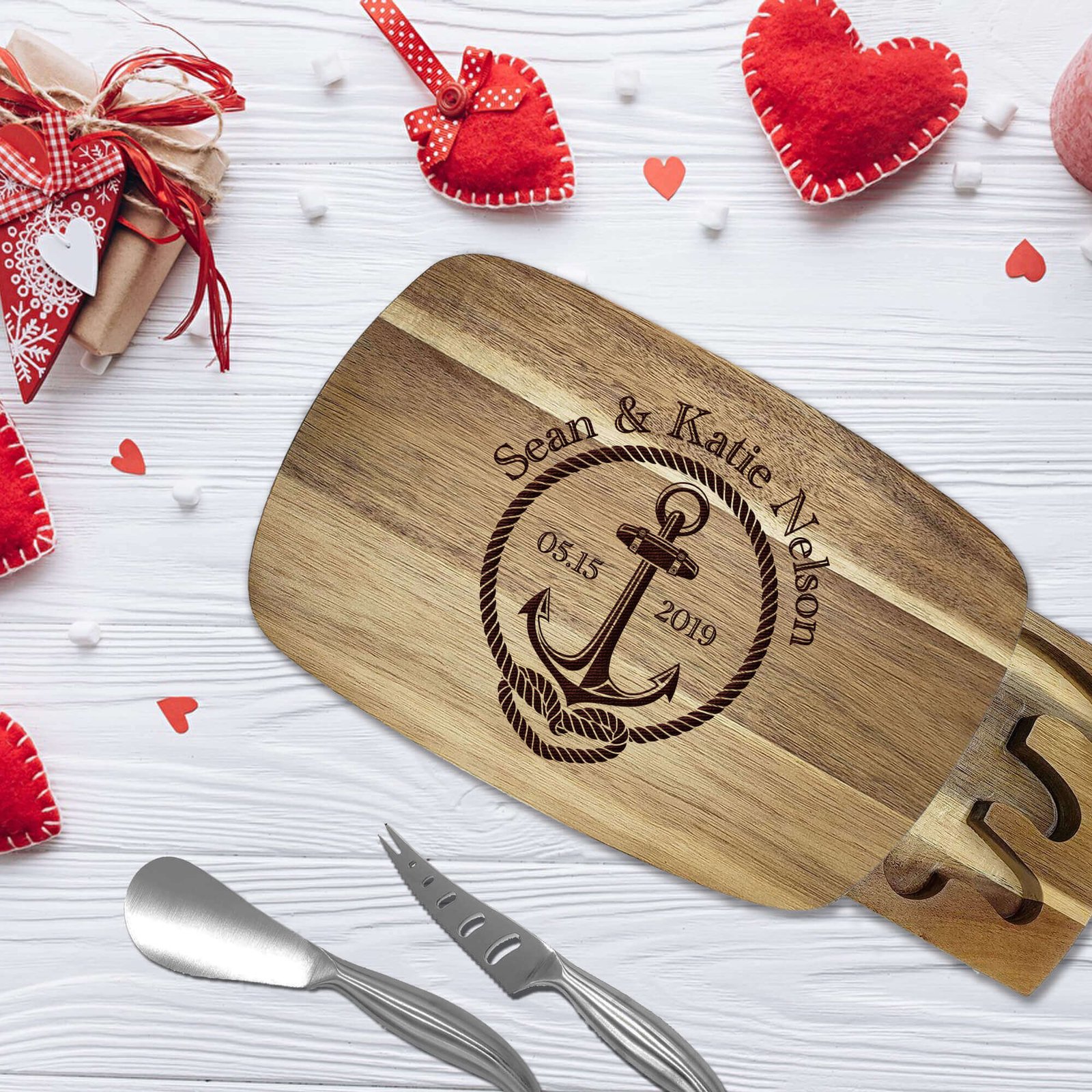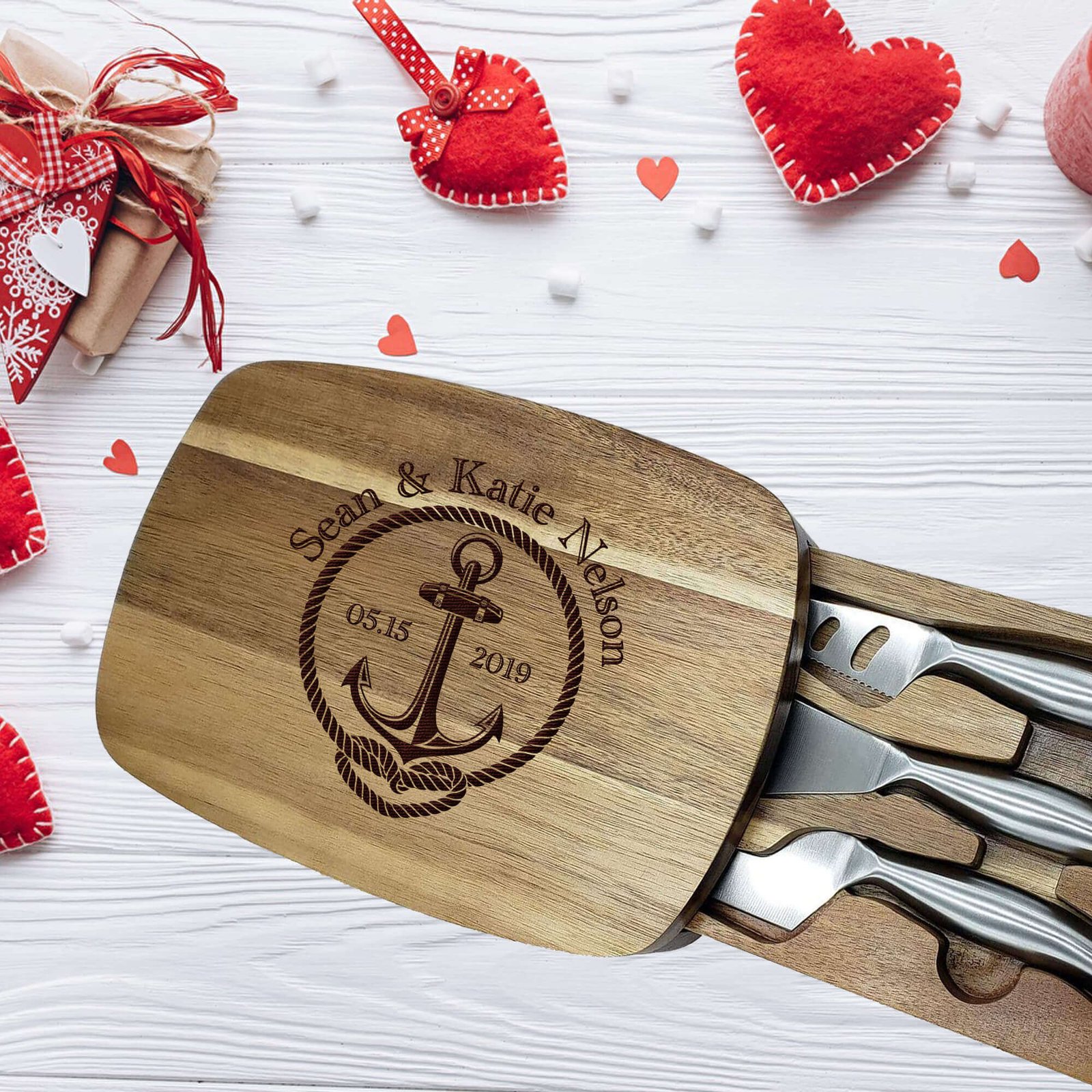 This custom cheese serving board is a thoughtful gift for couples celebrating wedding memories. It can use to serve and display a variety of cheeses during their celebrations. Also, the cheese serving board makes for a great gift for newlyweds couples. It can be a unique addition to their kitchenware collection, serving as a symbol of their new journey together.