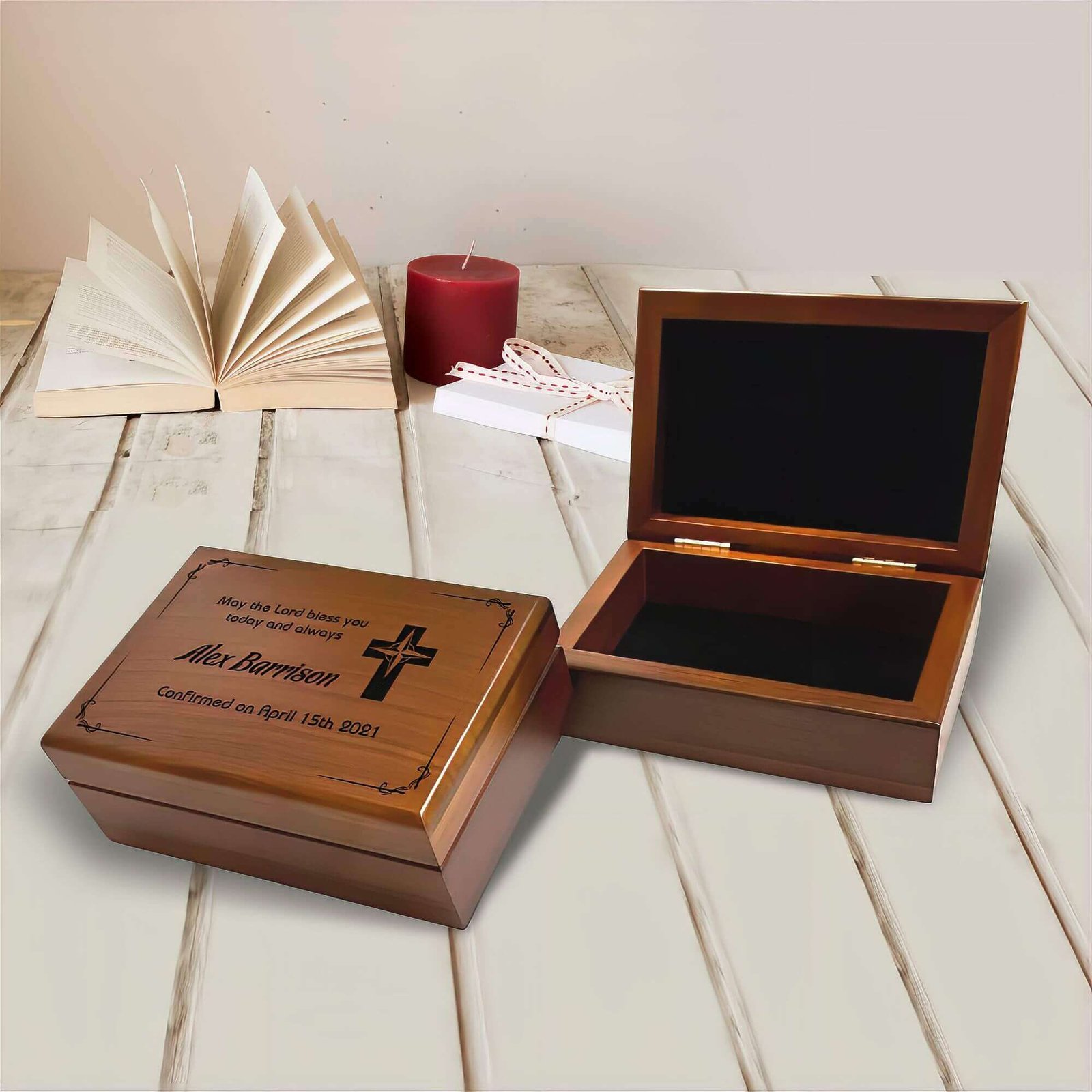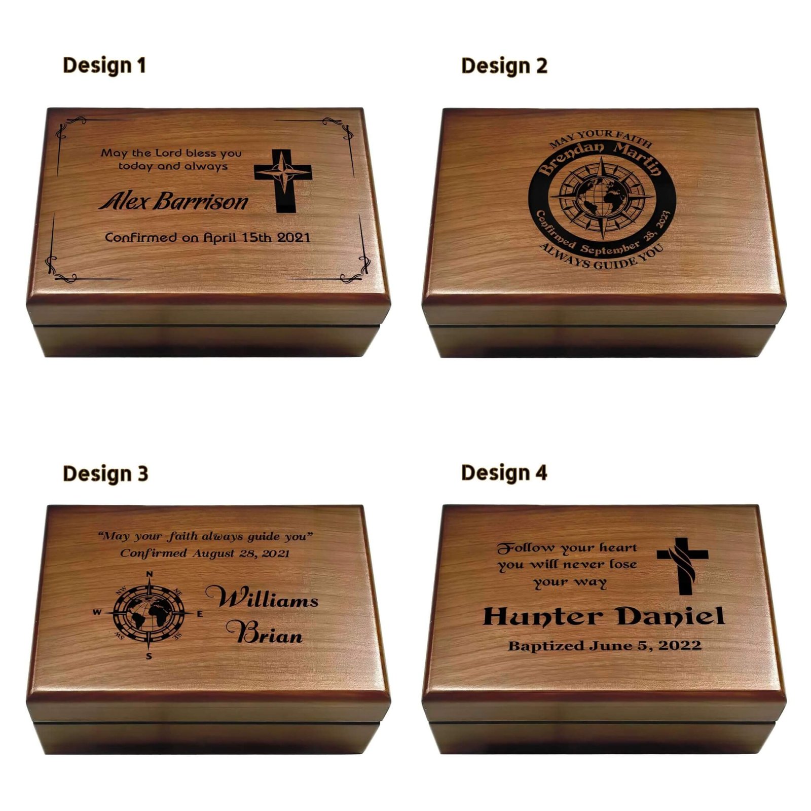 This Personalized Confirmation Gift for Boys is a thoughtful keepsake box designed to celebrate significant milestones such as Communion and Baptism. Crafted with care, this elegant box can be customized with the recipient’s name and date, making it a cherished memento for your grandson. Its spacious interior is perfect for storing precious memories, such as photographs, cards, and religious tokens, ensuring that these special moments are preserved for years to come. Gift this beautiful keepsake box to create lasting memories and honor his spiritual journey. If you want keepsake boxes for other family members, visit the Aspera design store.