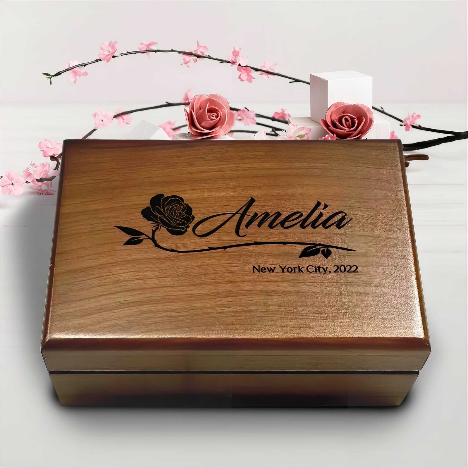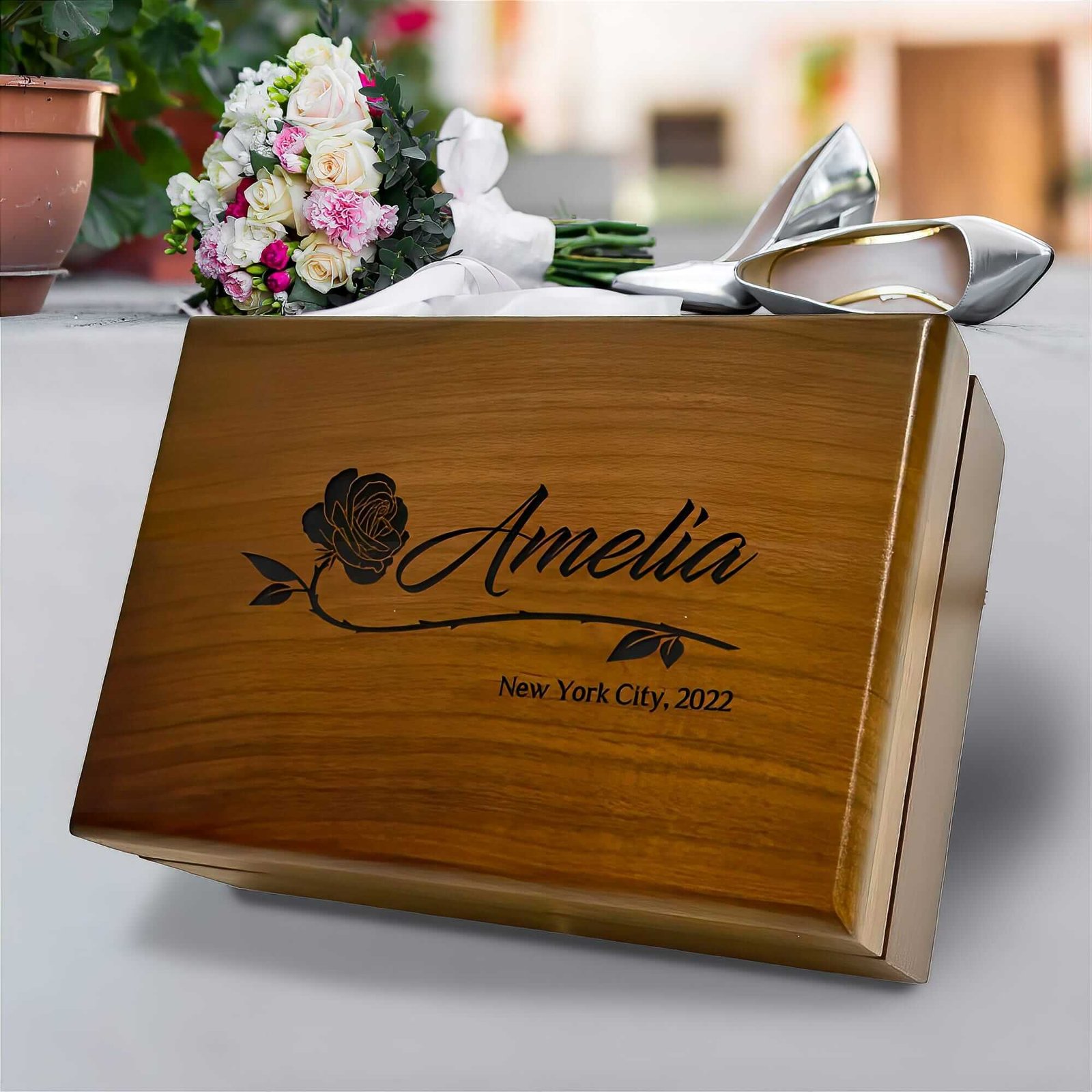 The elegant and romantic script takes center stage on this keepsake box. Celebrate love in all its forms — your loving relationship, a new addition to the family, your dear friend’s life milestone — with a personalized keepsake that gets more special over time. Ideal for weddings, anniversaries, or any milestone occasion. Engraved to perfection, this keepsake is not meant to hide in the back of a closet. This makes an elegant, thoughtful gift for the ones you love or for a personalized, special space to keep your prized mementos. And make excellent gifts for Housewarming parties, wedding gifts, Engagement presents, Gifts for Couples, Anniversary gifts, Present For Couples, Mother’s Day gifts, Kitchen gifts, and Birthday gifts.