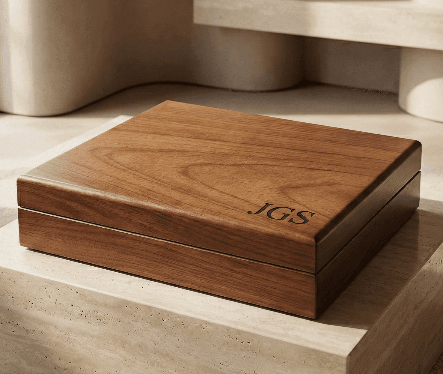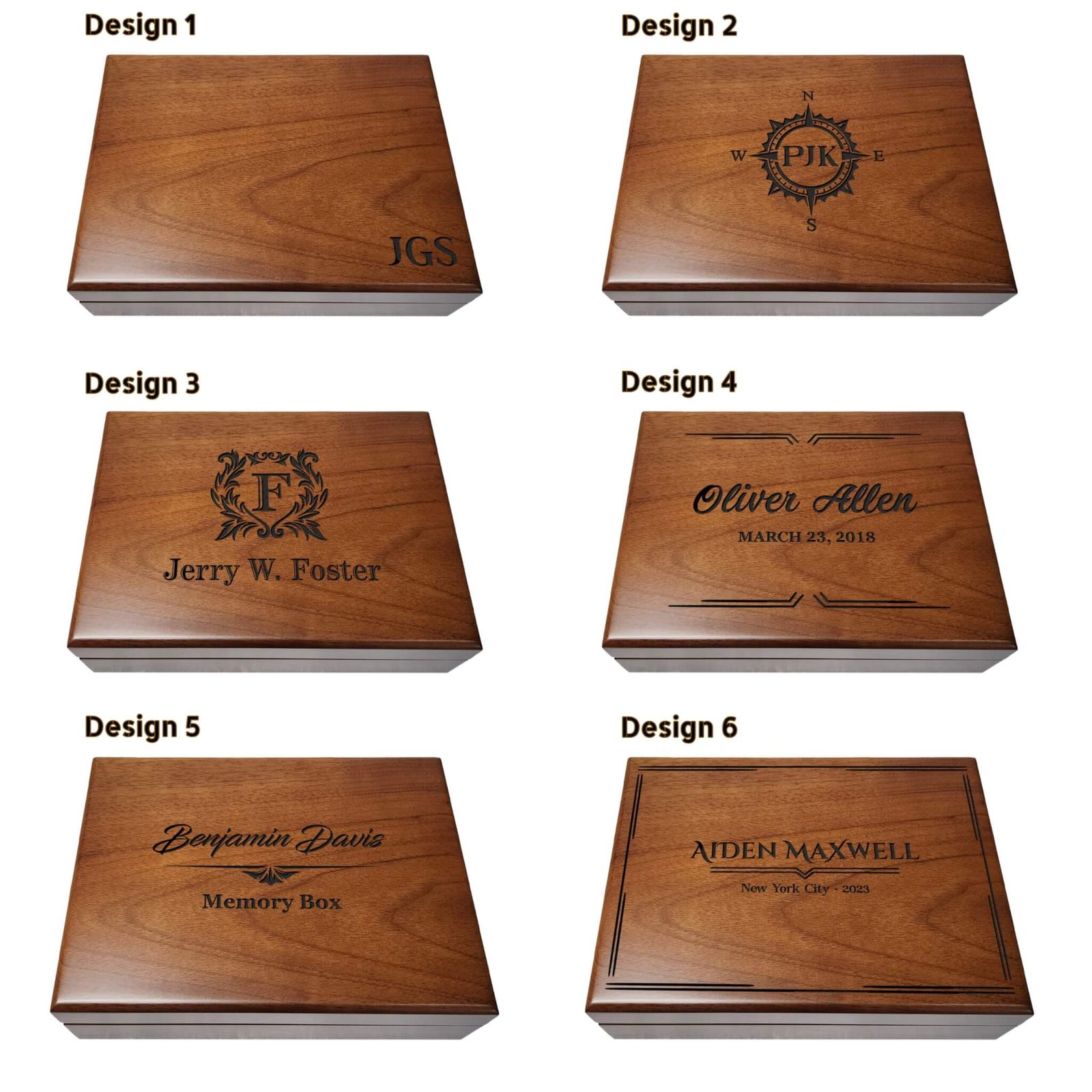 Our Large Memory Box is a treasure trove of memories waiting to be collected. This Extra Large Keepsake Box is designed to hold your most cherished possessions, keeping them safe and organized in style. Made from rich walnut wood, this Monogrammed Jewelry Box adds a personalized touch to your storage solution. Its spacious interior provides ample room for your jewelry, trinkets, and other beloved keepsakes. Whether displayed in your home or gifted to a loved one, this box is both practical and beautiful. Embrace the art of safekeeping with our Large Memory Box – a timeless piece that tells your unique story.