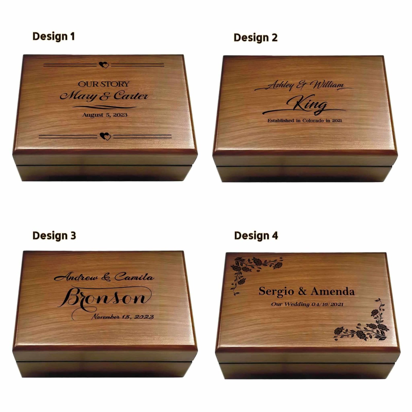 We make all items to order, which allows us to provide a personalized touch and meticulous attention to detail. Furthermore, as a testament to our unwavering commitment to exceptional craftsmanship, we diligently go the extra mile by engraving each order upon receipt. This commitment ensures we personalize and craft your Wedding Memory Box with utmost care.