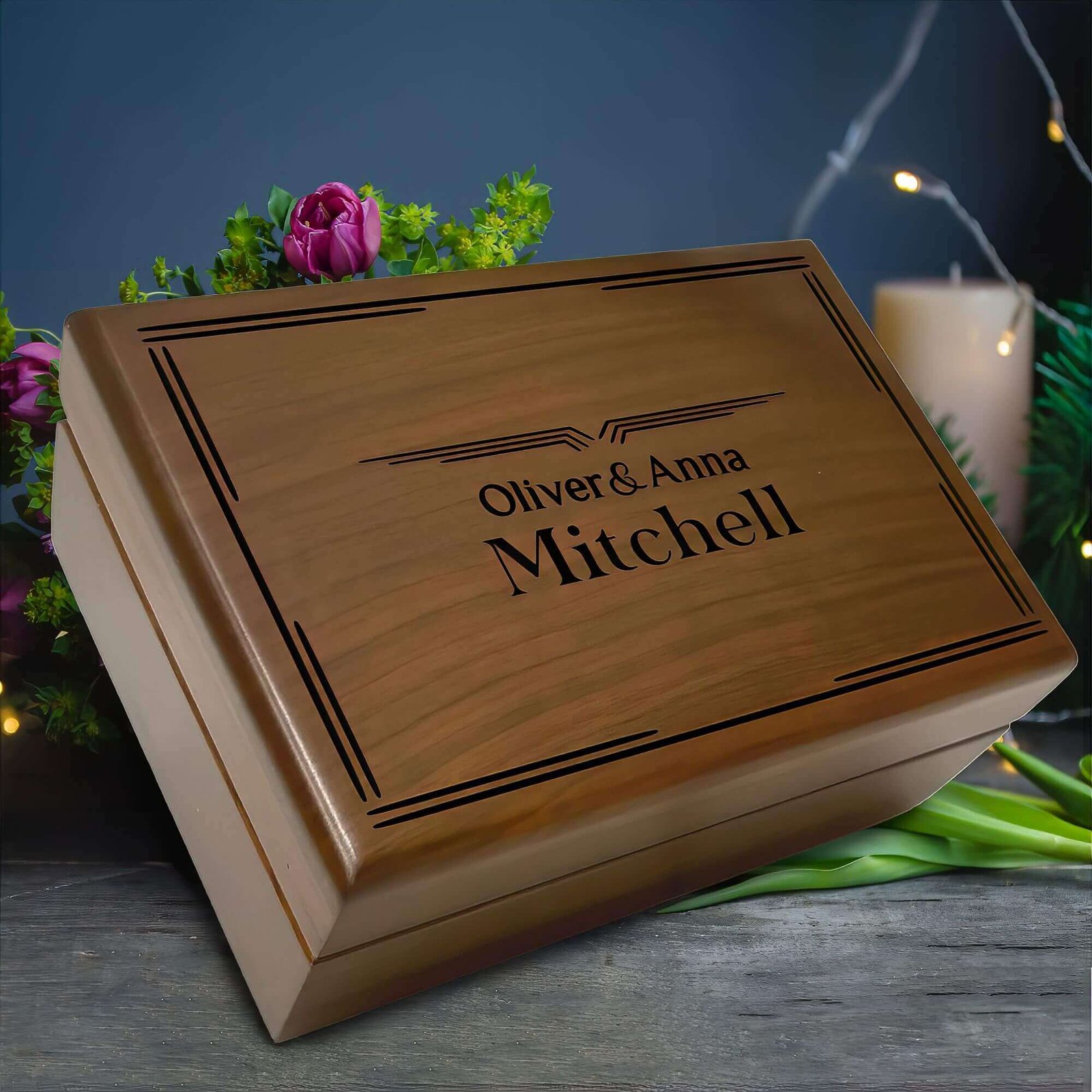 This Wedding Gift with Personalized Engraving is the ideal way to preserve the cherished memories of your wedding day and beyond. Designed as a special Couples Memory Box, it allows you to personalize it with your names, dates, or a meaningful quote, making it a unique piece that reflects your bond. This Engagement Anniversary Gift is more than just a storage solution; it’s a timeless keepsake that beautifully captures your journey together. Imagine the joy of reminiscing about those precious moments every time you open this exquisite box. Let this Engraved Wooden Box symbolize your love story and serve as a safe haven for your most treasured mementos. Start creating new memories while safeguarding the old with this enchanting and lasting piece.