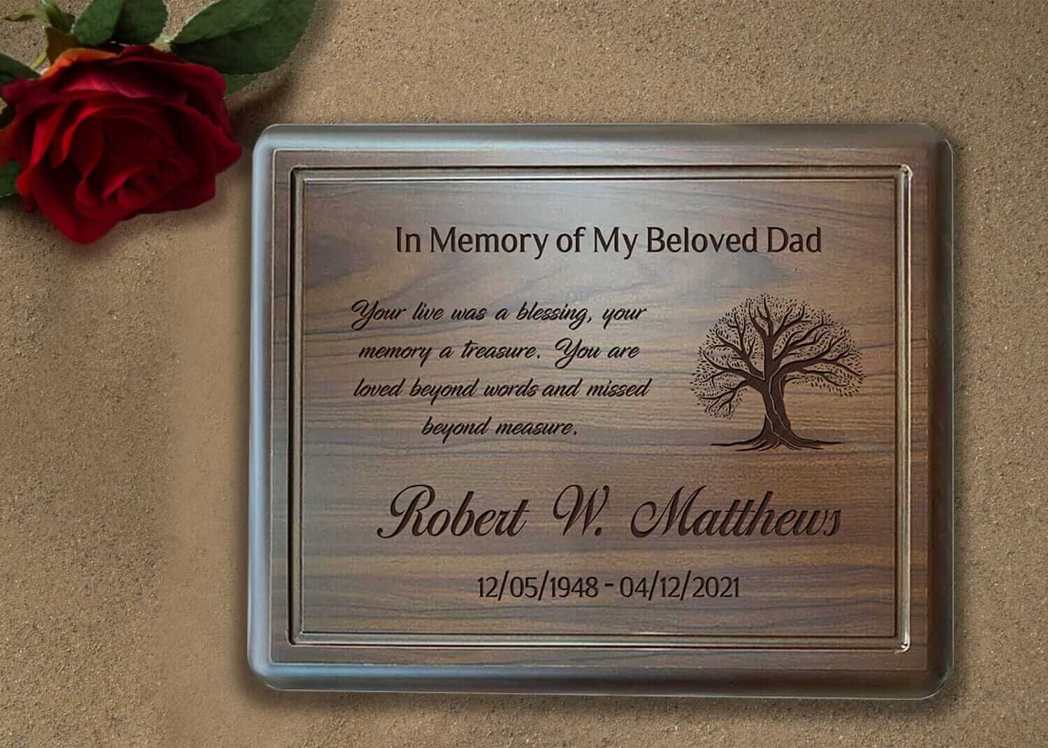 Crafted with love and care, our Personalized Dad Memorial Gift offers a tangible connection to the memory of your loved one. Each item is personalized with its name, significant dates, or a special message, making it unique and deeply personal. The personalization captures the essence of your relationship, reflecting the depth of your love and the special bond you shared. Our memorial gifts are made from premium-quality walnut wood and are built to endure. The enduring craftsmanship guarantees their longevity, transforming these keepsakes into lasting symbols of the love that transcends life’s physical boundaries.